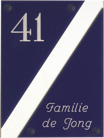 Gravoglas is een luxe en tegelijk stevige kunststofsoort (3 mm dikte), met de uitstraling van gekleurd glas, welke uitstekend geschikt is voor gebruik in en rondom uw woning. De tekst wordt in alle gravoglas-naamborden gegraveerd, waardoor uw naam niet weg kan slijten of vervagen. Het bijzondere aan gravoglas is dat het aan de achterzijde ingegraveerd wordt, dit in tegenstelling tot andere kunststofsoorten. Hierdoor blijft het materiaal aan de voorzijde glad en krijgt het een hele luxe uitstraling. Tot slot: de gravoglas-naamborden zijn standaard voorzien van schroefgaten (tenzij anders vermeld) en worden geleverd met afstandbusjes en afdekdopjes waardoor u het naambord eenvoudig op een korte afstand van de muur kunt monteren.