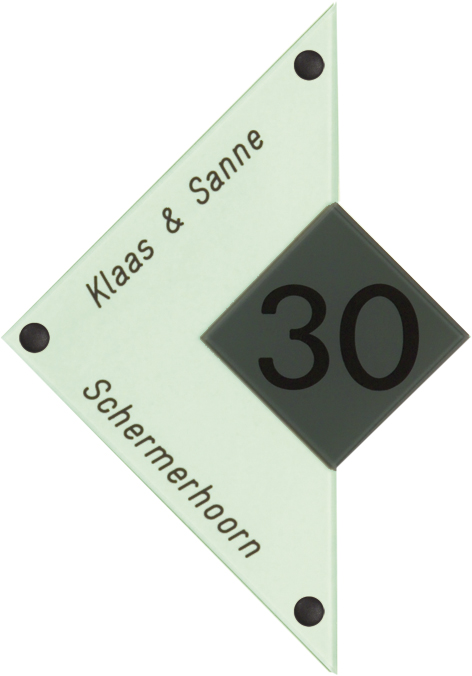 Gravoglas is een luxe en tegelijk stevige kunststofsoort (3 mm dikte), met de uitstraling van gekleurd glas, welke uitstekend geschikt is voor gebruik in en rondom uw woning. De tekst wordt in alle gravoglas-naamborden gegraveerd, waardoor uw naam niet weg kan slijten of vervagen. Het bijzondere aan gravoglas is dat het aan de achterzijde ingegraveerd wordt, dit in tegenstelling tot andere kunststofsoorten. Hierdoor blijft het materiaal aan de voorzijde glad en krijgt het een hele luxe uitstraling. Tot slot: de gravoglas-naamborden zijn standaard voorzien van schroefgaten (tenzij anders vermeld) en worden geleverd met afstandbusjes en afdekdopjes waardoor u het naambord eenvoudig op een korte afstand van de muur kunt monteren. Gravoglas een zeer luxe kunststofsoort dat tegen een stootje kan!
